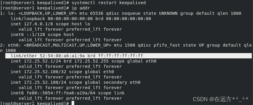 [root@server1 keepalived]# systemctl restart keepalived.service