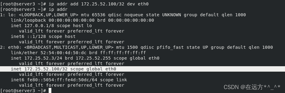 [root@server3 ~]# ip addr add 172.25.52.100/32 dev eth0