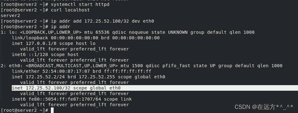 [root@server2 ~]# ip addr add 172.25.52.100/32 dev eth0