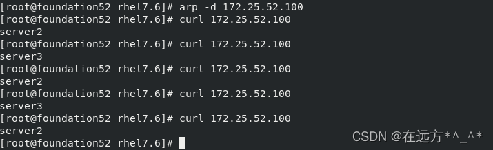 [root@server2 ~]# arptables -A OUTPUT -d 172.25.52.100 -j mangle --mangle-ip-s 172.25.52.2