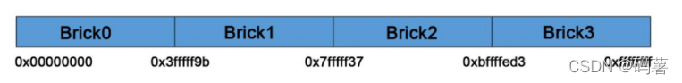 类似 RAID0,文件被分成数据块并以轮询的方式分布到多 个 Brick Server 上,文件存储以数据块为单位,支持大文件存储,文件越大,读取效 率越高