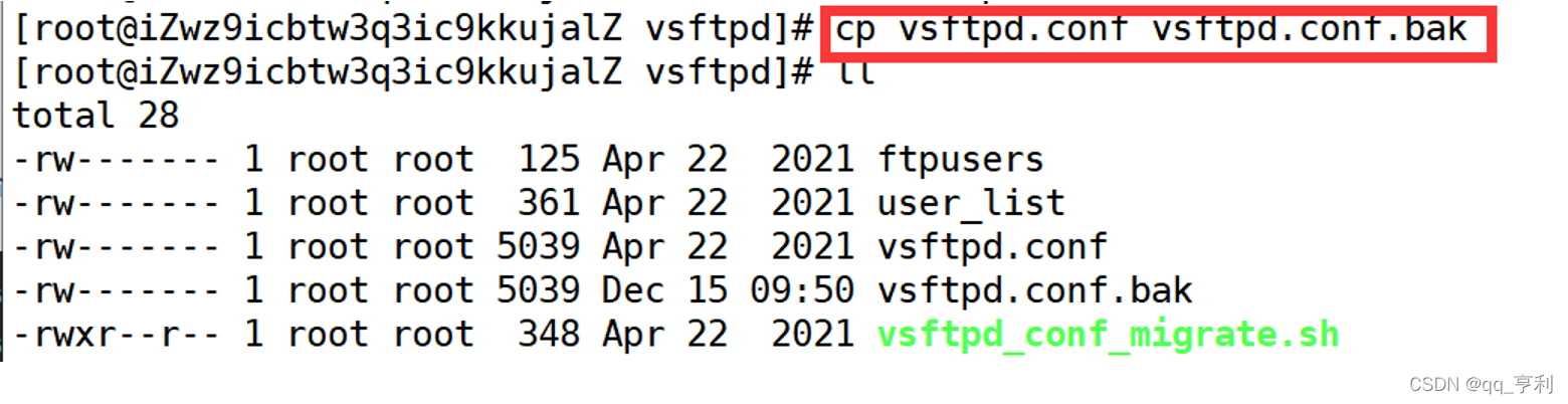 cp /etc/vsftpd/vsftpd.conf /etc/vsftpd/vsftpd.conf.bak