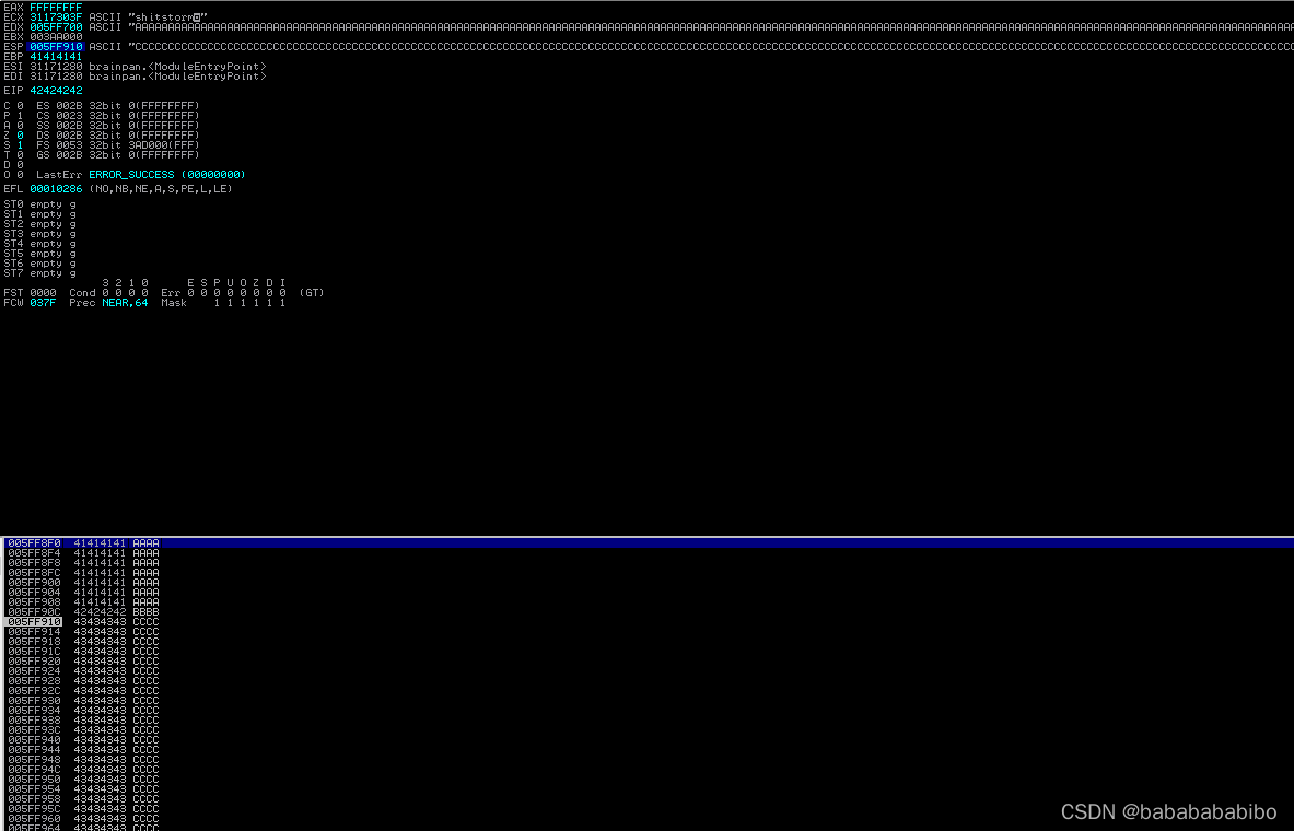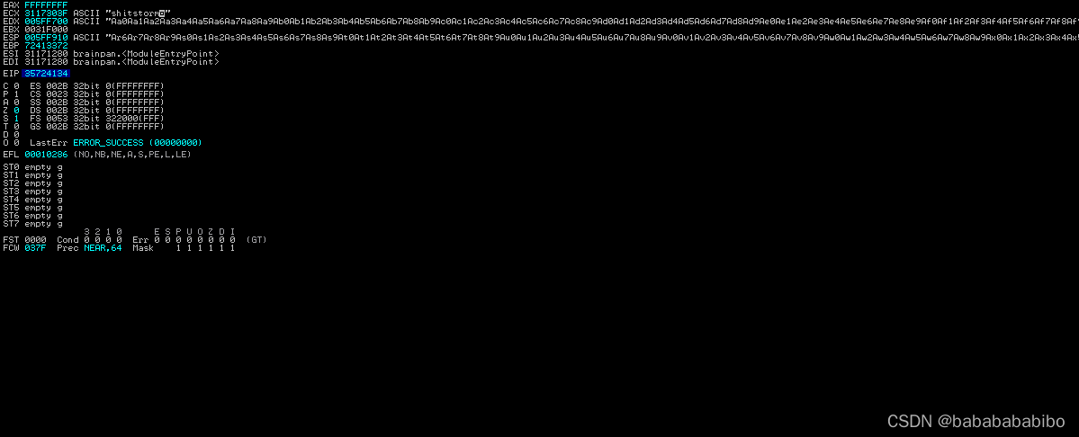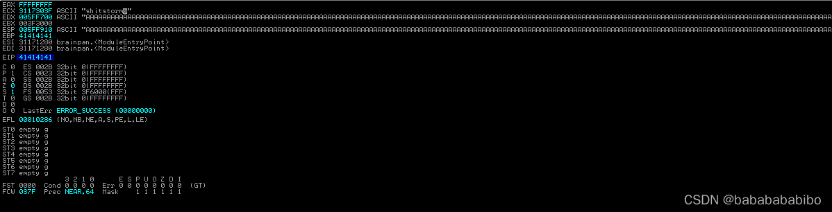 启用调试这个POC后 发现EIP寄存器确实被覆盖