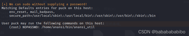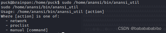 也就是说我们可以用sudo无密码执行anansi下anansi_util 执行后给出了用法