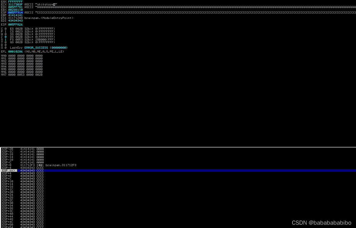再次执行POC的时候发现ESP寄存器指向向下偏移了两个字节