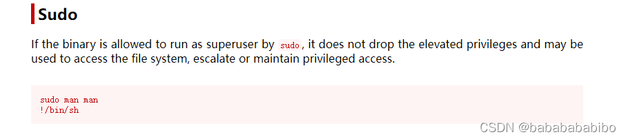 ?在GTFOBins里面查了一下 发现以sudo运行的man命令 通过输入!/bin/bash可以提升到root权限