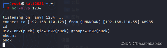 kali虚拟机ip:192.168.110.129(使用VM16 设置桥接模式)