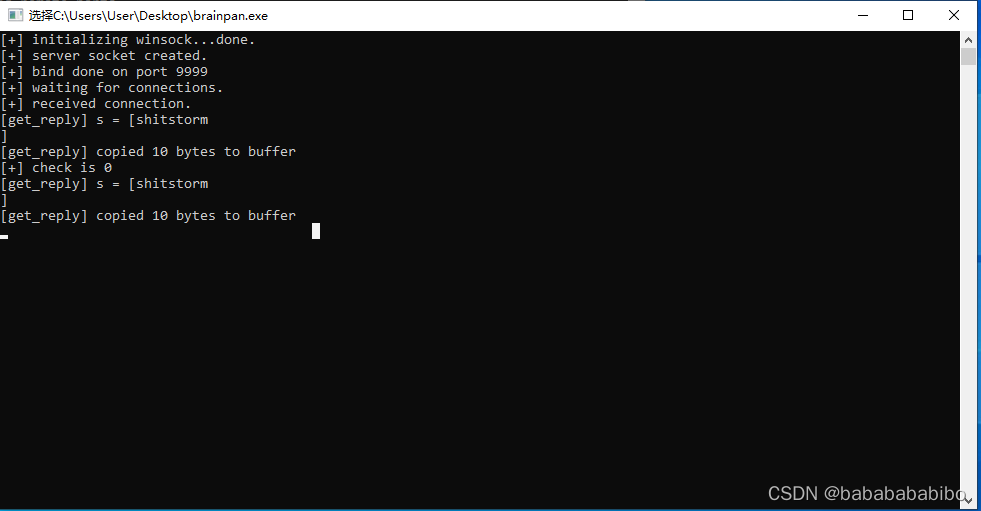 好像这个程序监听端口9999?我们用netcat连上去试试