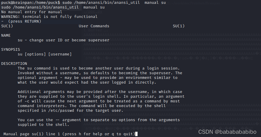 ?言归正传,输入第三条命令 发现其实就是一个可以查看手册页的man命令(这里我看了su命令的手册页)
