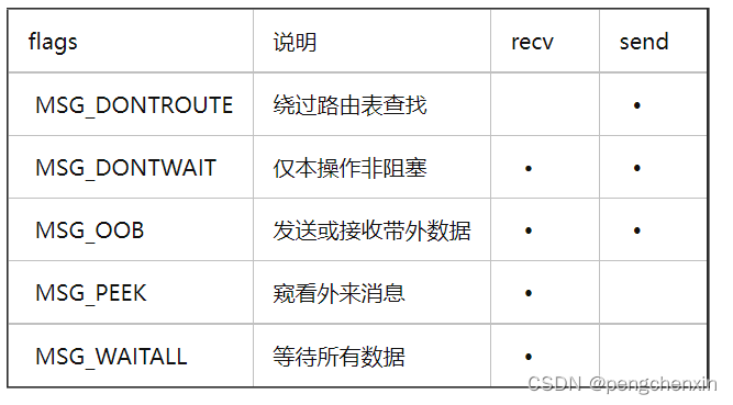 recv 和send的前3个参数等同于read和write。 flags参数值为0或:  2.readv&writev函数 它们只需一次系统调用就可以实现在文件和进程的多个缓冲区之间传送数据,免除了多次系统调用或复制数据的开销。 readv()称为散布读,即将文件中若干连续的数据块读入内存分散的缓冲区中。 writev()称为聚集写,即收集内存中分散的若干缓冲区中的数据写至文件的连续区域中。