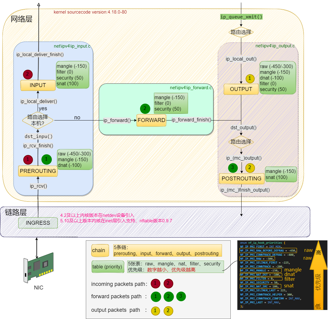 本文来详细分析linux netfilter在网络层的实现细节,本文代码分析是基于Linux内核版本4.18.0-80(也即centos8.0系统上)。