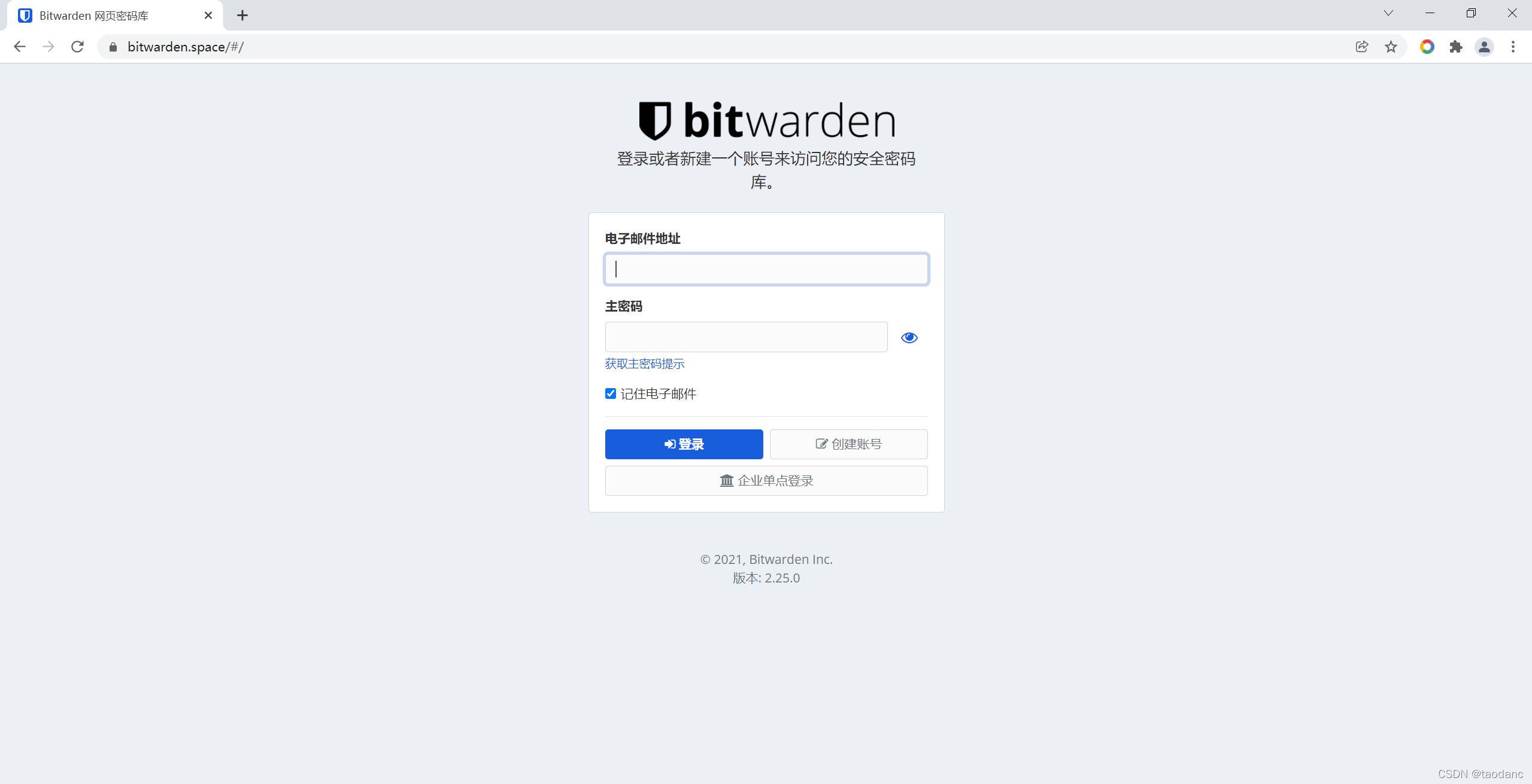bitwarden_rs使用Docker进行安装,Docker安装过程不在此处赘述。