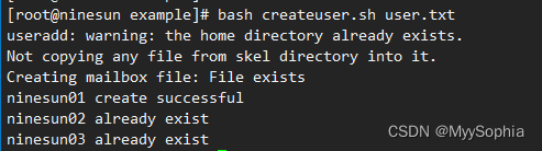 ninesun02 03已存在,有两个个warning : home目录已存在、mailbox 已存在。如何删除呢?