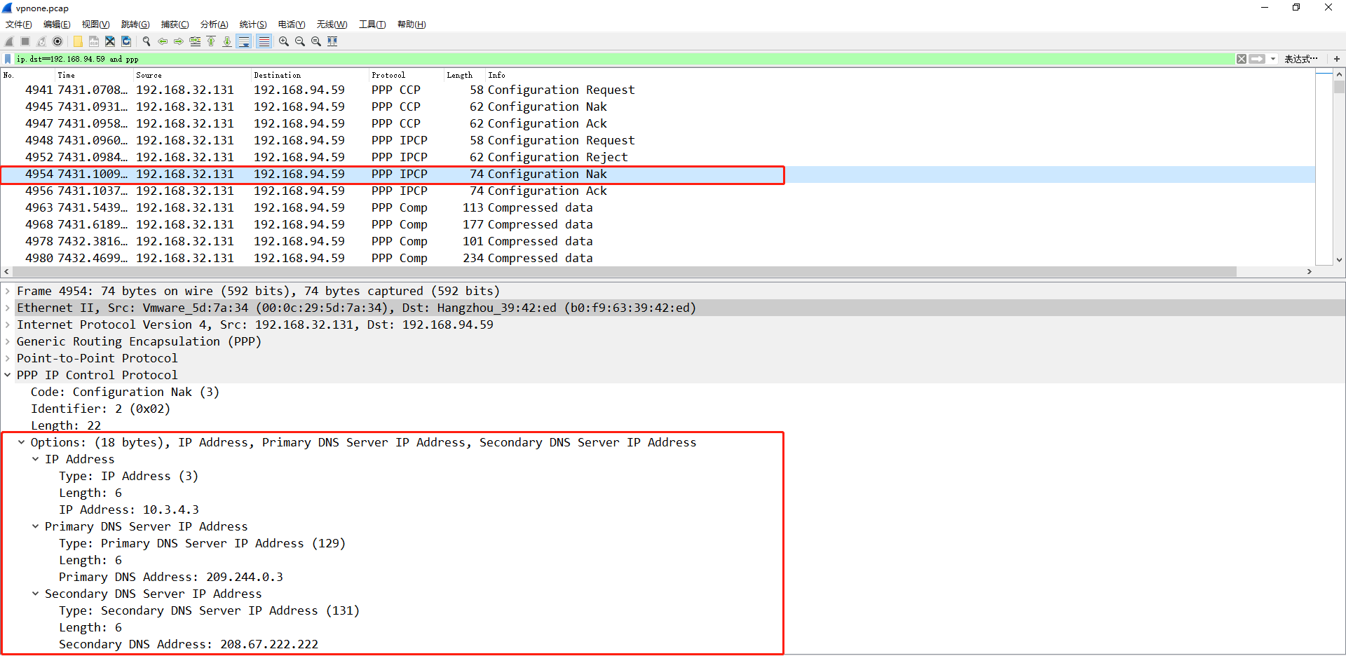 11某公司内网网络被黑客渗透,请分析流量,黑客获得的vpn的ip是多少