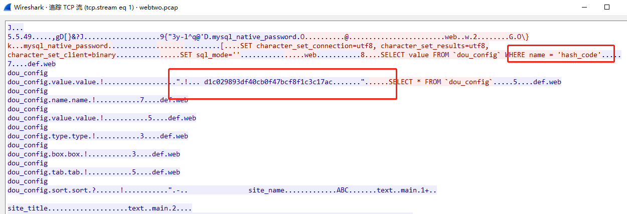 6 某公司内网网络被黑客渗透,请分析流量,黑客找到的数据库密码是多少 7 某公司内网网络被黑客渗透,请分析流量,黑客在数据库中找到的hash_code是什么