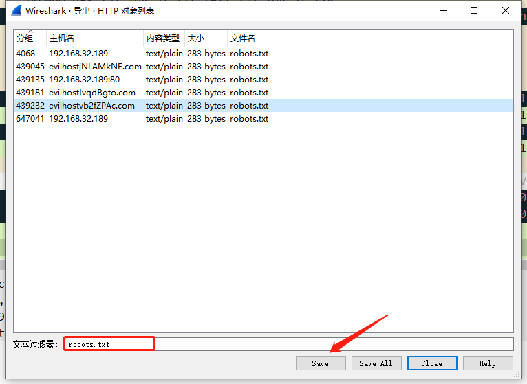 直接导出http对象,在文本过滤器中选择robots.txt,将文件保存下来,即可获得flag