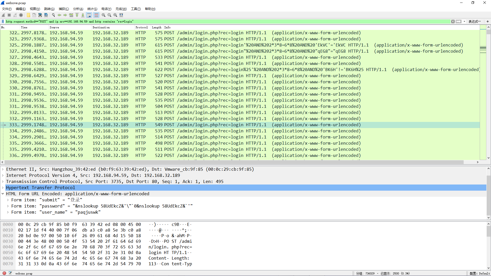 3 某公司内网网络被黑客渗透,请分析流量,得到黑客使用了什么账号密码登陆了web后台(形式:username/password)