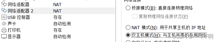1)、 添加一块儿网卡,选择仅主机模拟外网