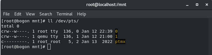 c---------. 1 root root 5, 2 1月 12 22:43 ptmx