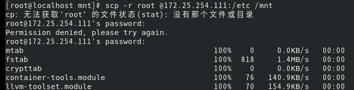 [root@localhost mnt]# rsync -r root@172.25.254.111:/mnt /mnt/