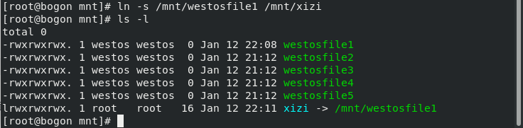 lrwxrwxrwx. 1 root root 16 1月 12 22:26 xizi -> /mnt/westosfile1