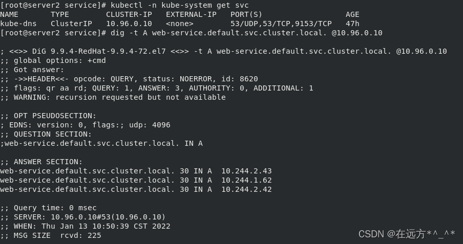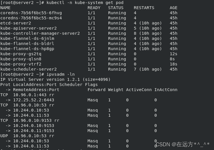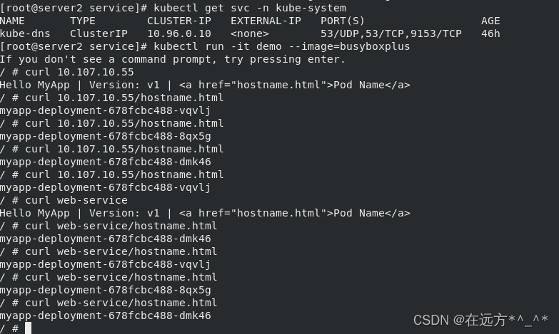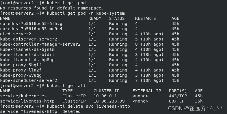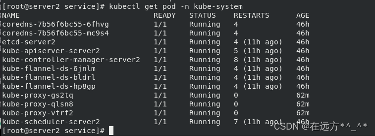 [root@server2 service]# kubectl get pod -n kube-system [root@server2 service]# kubectl get svc -n kube-system