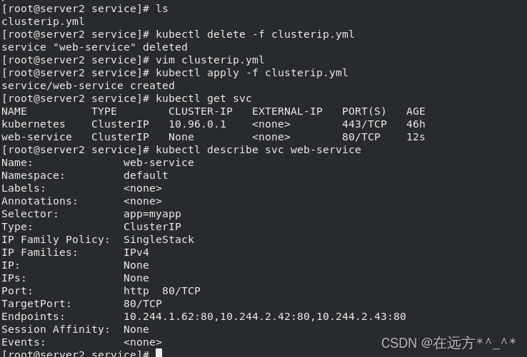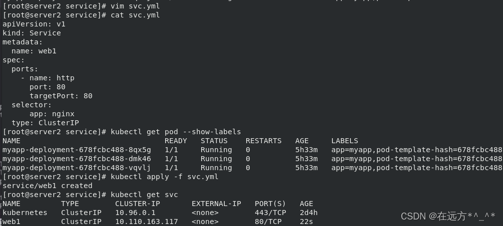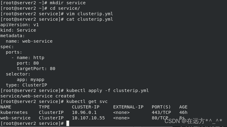 [root@server2 service]# kubectl apply -f clusterip.yml