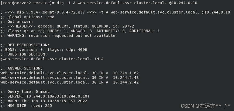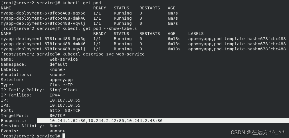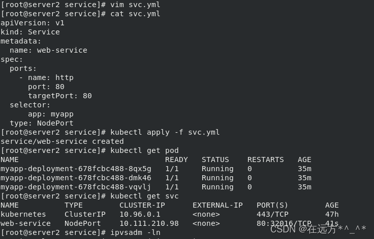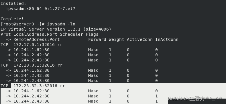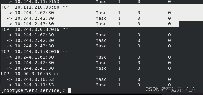 kube-proxy通过linux的IPVS模块,以rr轮询方式调度service中的Pod。 [root@server2 ~]# ipvsadm -ln