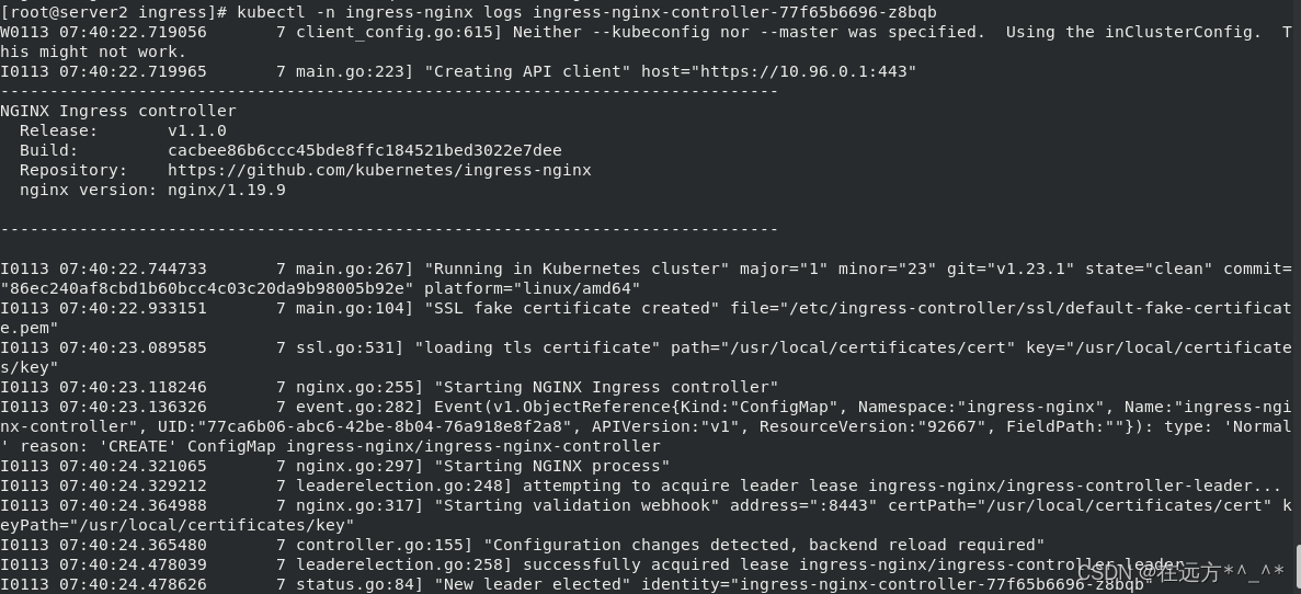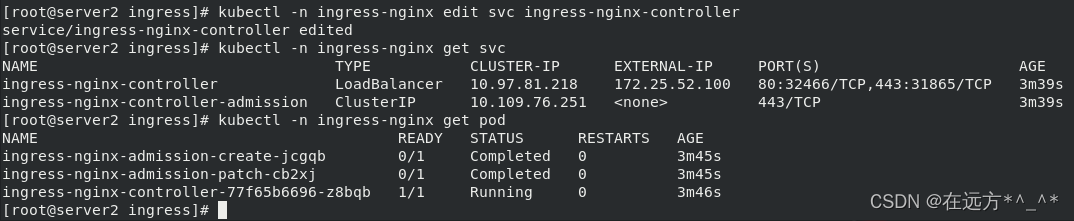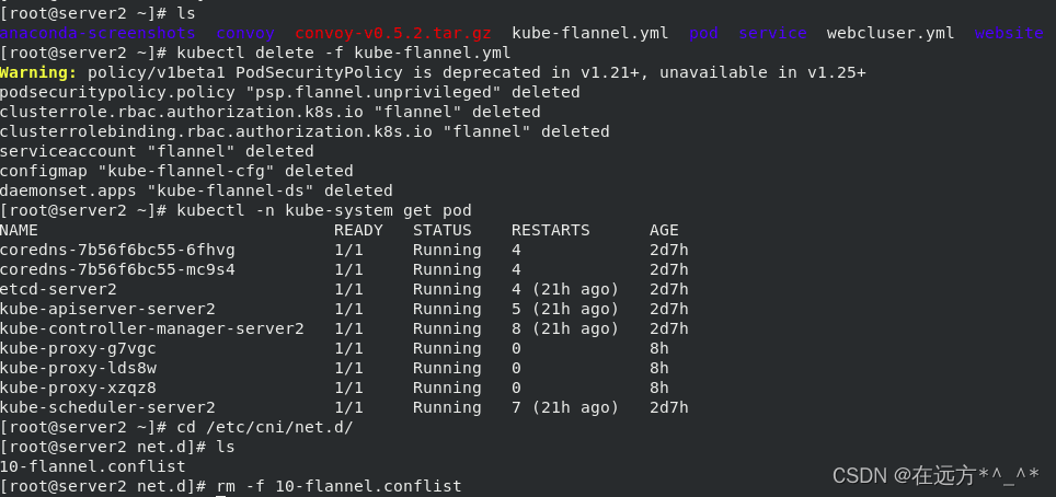 [root@server2 ingress]# kubectl get pod -n kube-system | grep kube-flannel | awk '{system("kubectl delete pod "$1" -n kube-system")}'