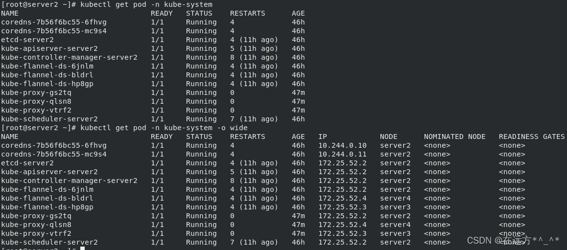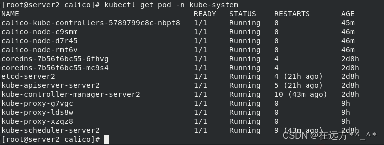 [root@server2 ~]# kubectl get pod -n kube-system -o wide