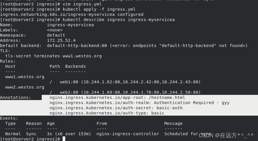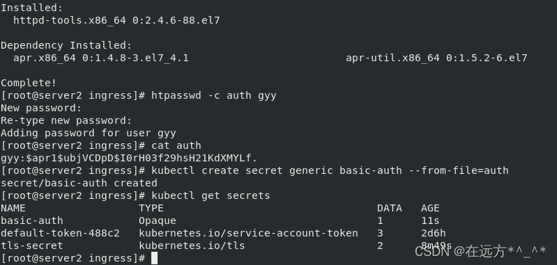 [root@server2 ingress]# kubectl create secret generic basic-auth --from-file=auth