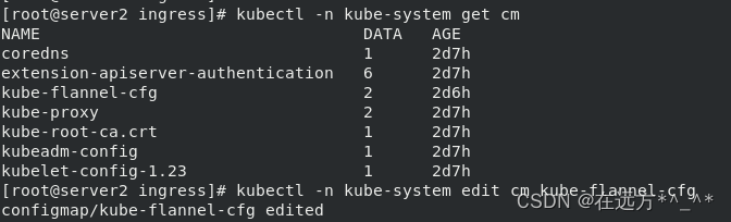 [root@server2 ingress]# kubectl -n kube-system edit cm kube-flannel-cfg ##修改