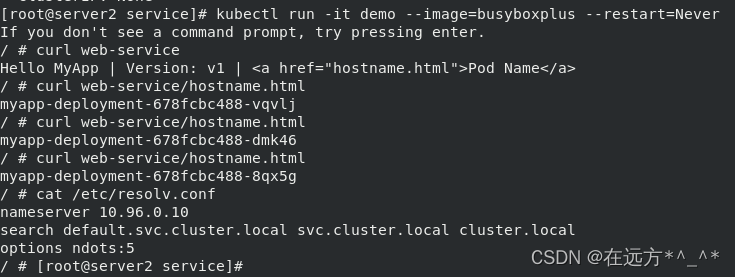 [root@server2 service]# kubectl run -it demo --image=busyboxplus