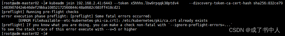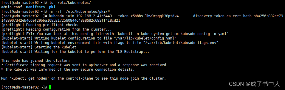 [root@adm-master02 ~]# kubeadm join 192.168.2.41:6443 --token x5hhhs.lbw9rpqqk38ptdv4 --discovery-token-ca-cert-hash sha256:832ce791483907d42eb46def29bba10852172560844c48a8682c683ff418cd21