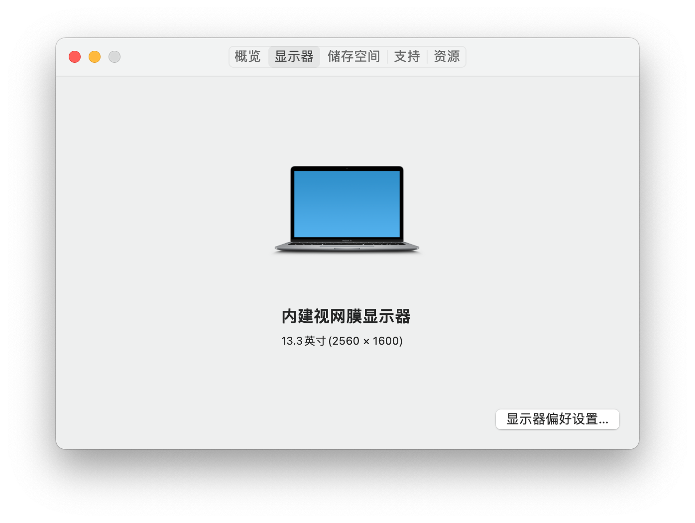 ?也就是说我们屏幕的分辨率为 1440*900,而我们进入到 Apple 系统中查询发现 MacBook Air 13.3-inch 内建显示器实际分辨率为 2560*1600,也就是说 macOS 渲染像素和实际像素并不是点对点的关系。