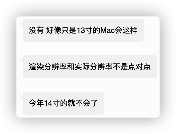 后来,通过咨询朋友了解到,似乎只有 13.3 英寸的 MacBook 机型会受到影响,因为屏幕渲染分辨率和实际分辨率不是点对点的关系,其他尺寸的 MacBook 好像不会受到影响,不过我也没有机器进行测试,所以暂时无法求证。