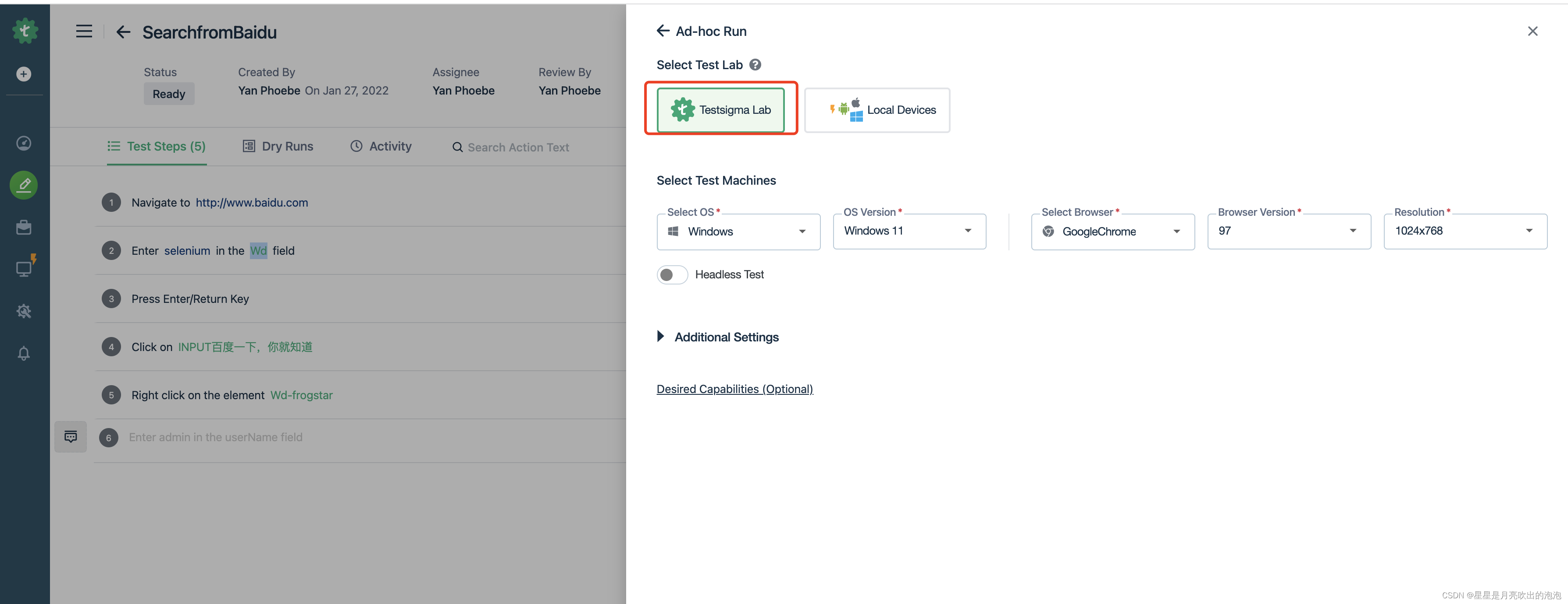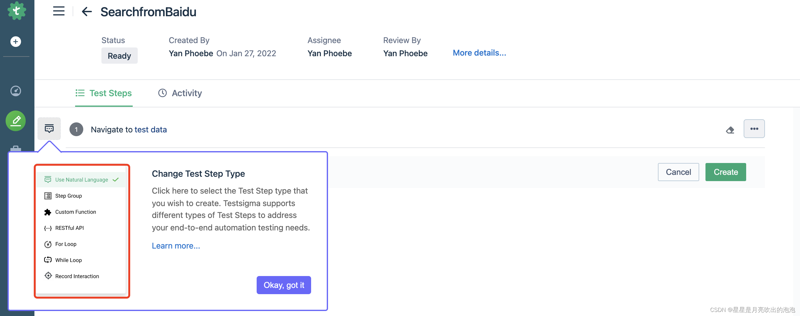 Testsigma是?一款基于云端的、支持测试左移的、以AI驱动测试的自动化平台,?为Web、移动应用以及RESTful服务等各种应用的测试服务。?功能测试人员可以轻松地使用自然语言编写出简化的测试脚本,并通过可重用的步骤组合和集中对象存储库,从而最大限度地提高了测试代码的重用性。Testsigma能够与各种开源的或第三方工具相集成,为持续测试提供所有必需的功能,如数据驱动测试、跨浏览器测试、可重用性测试套件、测试计划与数据管理、电子邮件与Slack通知、并行测试执行、集中对象/元素存储库、综合报告、与CI工具的集成、以及自动化Bug报告等。