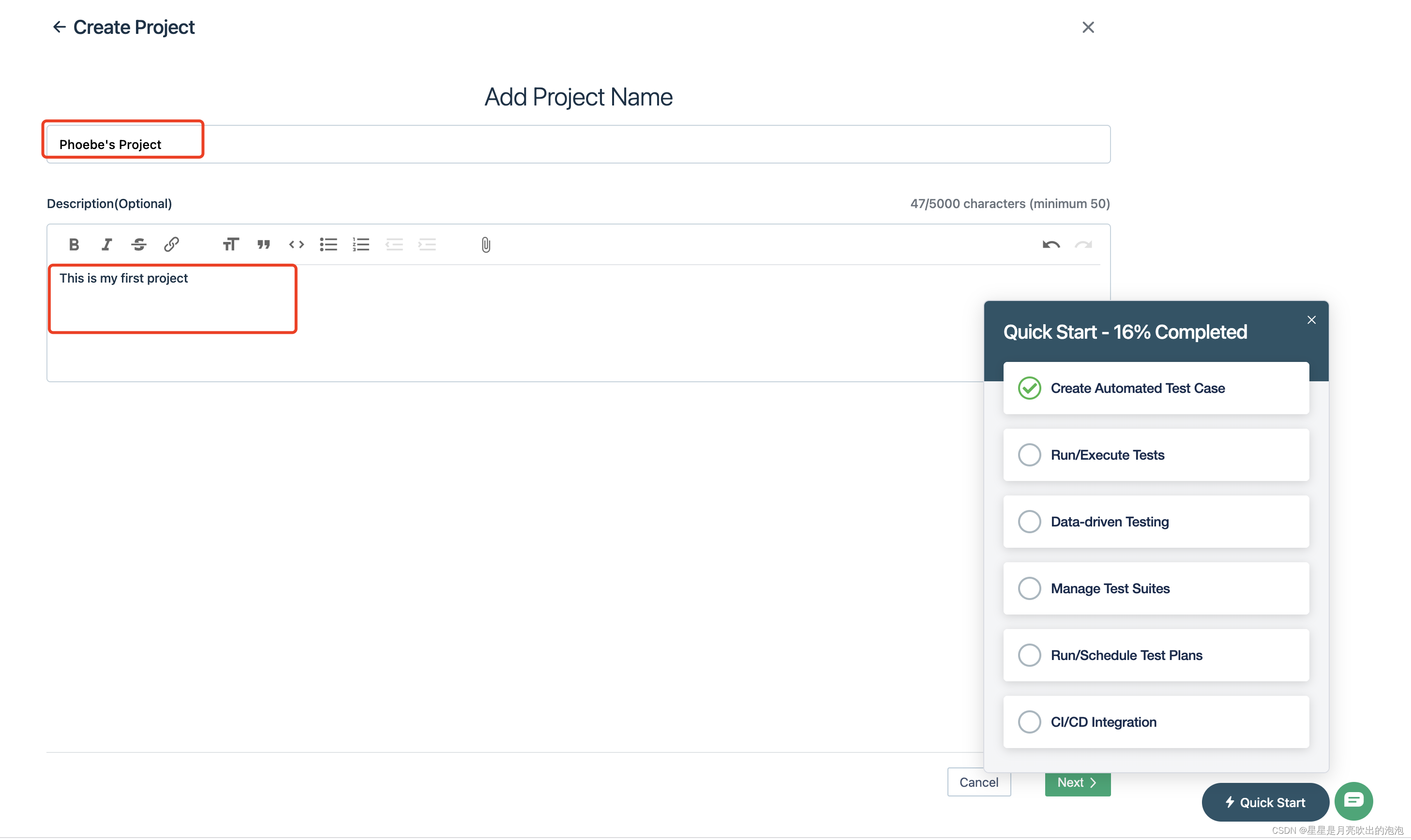 3.3 创建项目Project,同时会有支持小助手弹出,有问题随时可以咨询