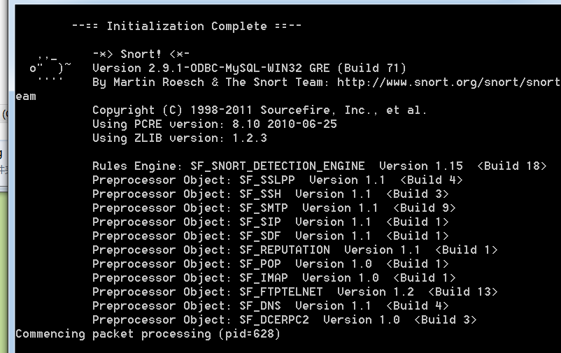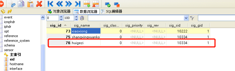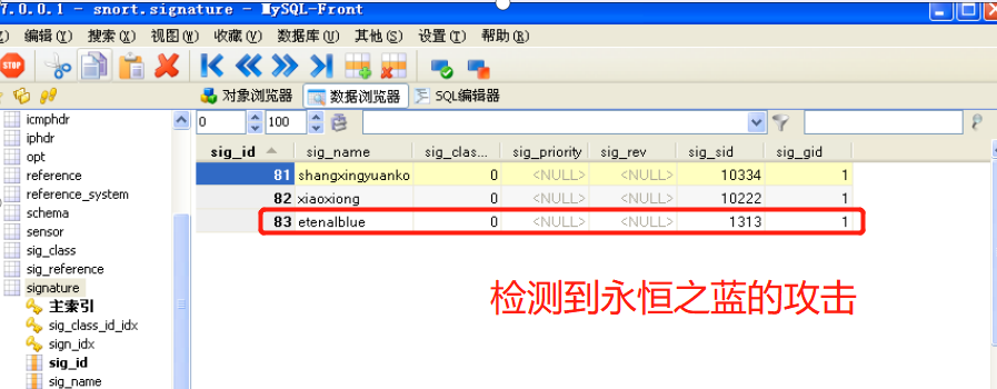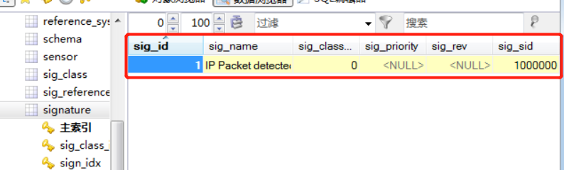 成功启动Snort  因为在rule文件中设置的测试规则,所以在MySQL中查看报警信息