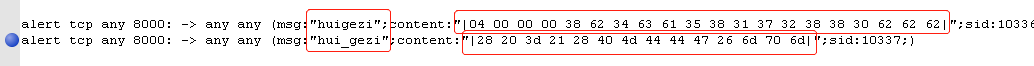 首先生成服务器 在控制机中打开灰鸽子程序,配置病毒,将控制机的IP地址填入到其中,修改端口为8000,然后生成服务器。  将服务器在被控机上运行,此时发现控制机中的灰鸽子检测到被控机。  在上述步骤操作之前,我们需要先打开wireshark抓取控制机与被控机之间的通信。 在它们的包中找到特征字段。 跟踪流,寻找特征字段,这里我们发现两处可以使用的特征值  另一个特征字段  找到特征字段后,我们在snort中添加规则,将两处特征值都添加入规则中  然后断开连接,重新连接,打开数据库,检测出灰鸽子