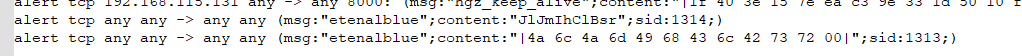 永恒之蓝利用到了Windows的建立在tcp协议上的SMB协议进行通信。在tcp三次握手建立连接后,开始协商使用SMB 协议,进行通信。我们跟踪数据流寻找特征, 第一个特征,观察smb 协议数据流  为了确保准确,我们再寻找一个特征字段 首先我们了解一下为什么会产生永恒之蓝。 永恒之蓝产生的原理是通过向Windows服务器的SMBv1服务发送精心构造的命令造成溢出,最终导致任意命令的执行。 SMB_COM_NT_TRANSACT本身是不支持FEA LIST的,产生漏洞的为SMB_COM_TRANSACTION2命令。对于TRANSACTION系列的命令如果发送的长度过大,SMB会将该请求包拆分进行发送,从PCAP分析看正常的SMB连接之后,NT Trans Request的Total Data count 为0x10016大于FEA大小0x10000,TotalDataCount”值字段在NT Trans中为DWORD,在Trans2请求中为WORD。因此,此错误使得有可能在Trans2请求中发送大于65535(0xffff)限制的payload。 所以设立规则为,检测payload大小是否大于65535(0xffff)限制,如果大于,则可以判断是永恒之蓝漏洞。 攻击机利用TRANSACTION2和NT_TRANSACT的关键区别在于后者调用的数据包是前者大小的2倍,在使用NT_TRANSACT子命令在TRANSACTION2子命令前向靶机发送伪造的消息,就会使靶机出现验证错误。一旦攻击者完成初始的溢出,就可以利用SMBv1中的第3个漏洞来进行Heap Spraying(堆喷射),导致在给定地址分配一块内存。然后,攻击者就可以写入和执行shellcode来控制系统  在获得了以上信息后设立snort规则  重想使用fuzzbunch模块运用永恒之蓝漏洞,打开数据库,发现捕获到永恒之蓝。  |
