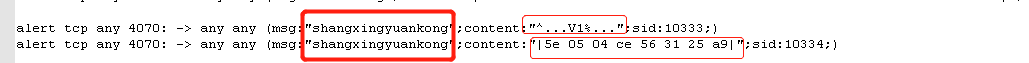 生成服务端  同样被控机中运行木马,wireshark抓包,跟踪流 发现特征字段  Snort中添加规则  然后重复上述木马连接过程,打开数据库发现上兴远控报警提示信息