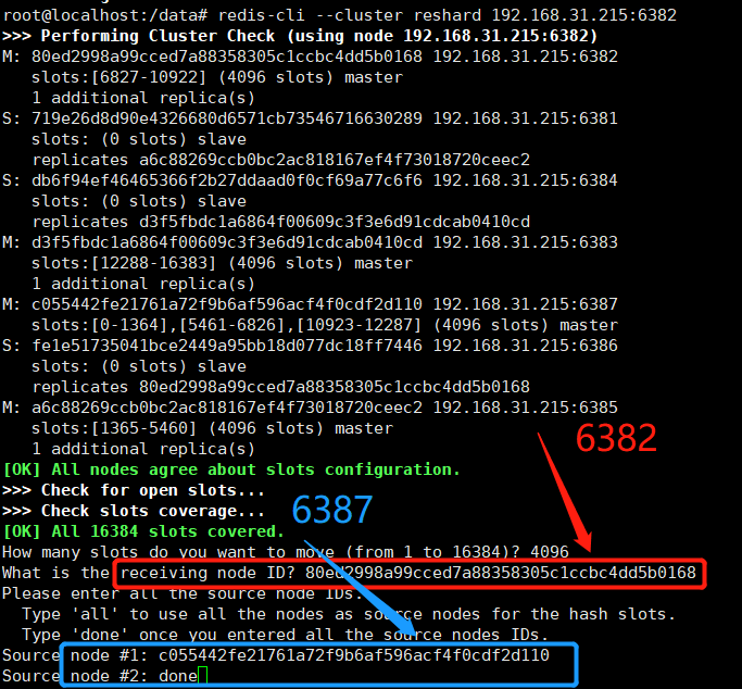 将新增的6387节点(空槽号)作为master节点加入原集群