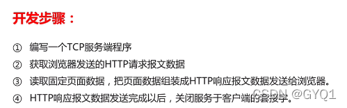 if __name__ == '__main__': ? ? tcp_server_socket = socket.socket(socket.AF_INET, socket.SOCK_STREAM) ? ? tcp_server_socket.setsockopt(socket.SOL_SOCKET, socket.SO_REUSEADDR, True) ? ? tcp_server_socket.bind(('', 8080)) ? ? tcp_server_socket.listen(128) ? ? while True: ? ? ? ? client_socket, client_ip = tcp_server_socket.accept() ? ? ? ? client_request_data = client_socket.recv(1024).decode() ? ? ? ? print(client_request_data) ? ? ? ? with open('./index.html', 'rb') as fp: ? ? ? ? ? ? file_data = fp.read() ? ? ? ? response_line = 'HTTP/1.1 200 OK \r\n' ? ? ? ? response_header = 'Server:pwb\r\n' ? ? ? ? response_body = file_data ? ? ? ? response_data = (response_line + response_header + '\r\n').encode() + response_body ? ? ? ? client_socket.send(response_data) ? ? ? ? client_socket.close()
