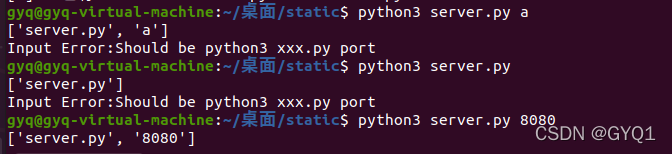 def main(): ? ? print(sys.argv) ? ? if len(sys.argv) != 2: ? ? ? ? print("Input Error:Should be python3 xxx.py port") ? ? ? ? return ? ? if not sys.argv[1].isdigit(): ? ? ? ? print("Input Error:Should be python3 xxx.py port") ? ? ? ? return ? ? port = int(sys.argv[1]) ? ? my_web_server = HttpWebServer(port) ? ? my_web_server.start()