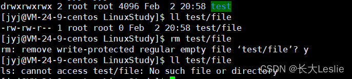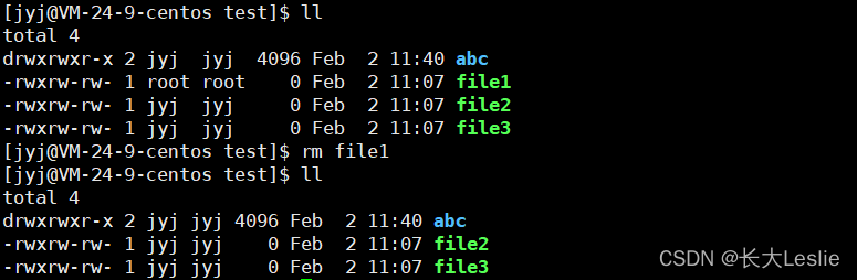 ?file1 的拥有者和所属组都是root,而执行的人是jyj,最终我成功的删除掉了file。