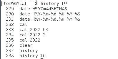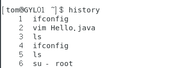 含义:显示之前输入的命令记录(只要输入后按回车,就算一条记录,无论对与错!) "history":显示之前所有使用过的命令记录