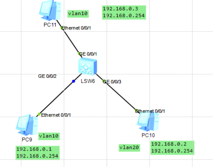 子vlan:子vlan就是聚合vlan的一部分,子vlan用于分配给物理接口,子接口依靠父亲vlan的三层接口与外界联系或与不同vlan通信