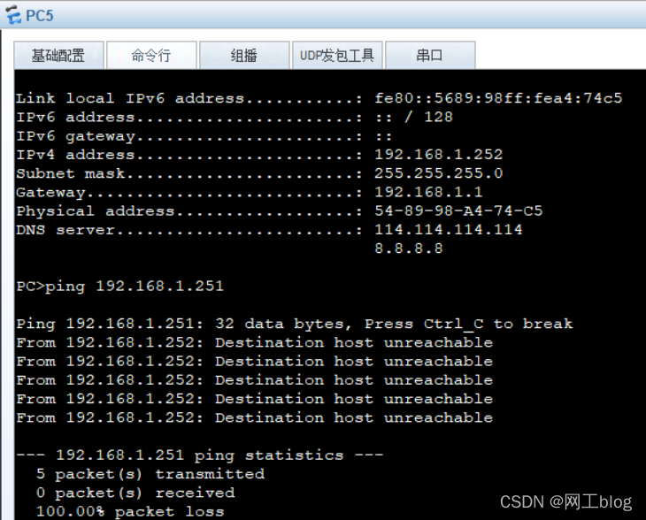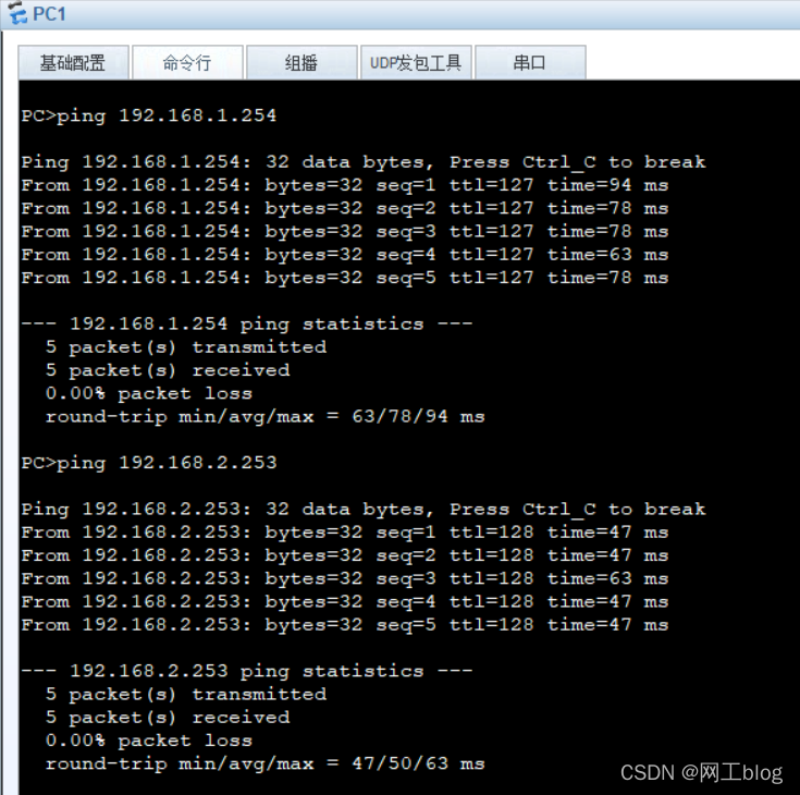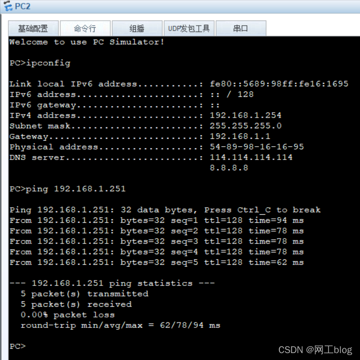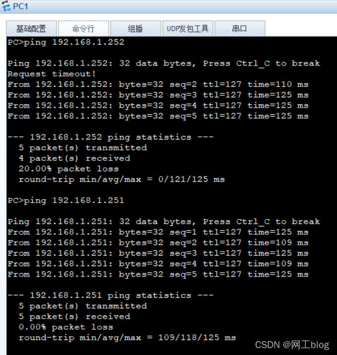 3)验证PC1可以ping通全网,PC2可以ping通PC6,PC4/5不能ping通PC6?