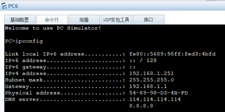 4.所有pc通过DHCP获取,pc1/3可以正常访问pc2/4/5/6